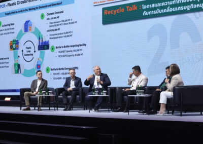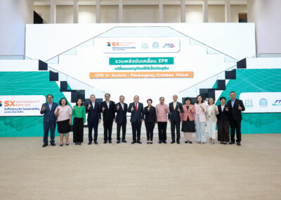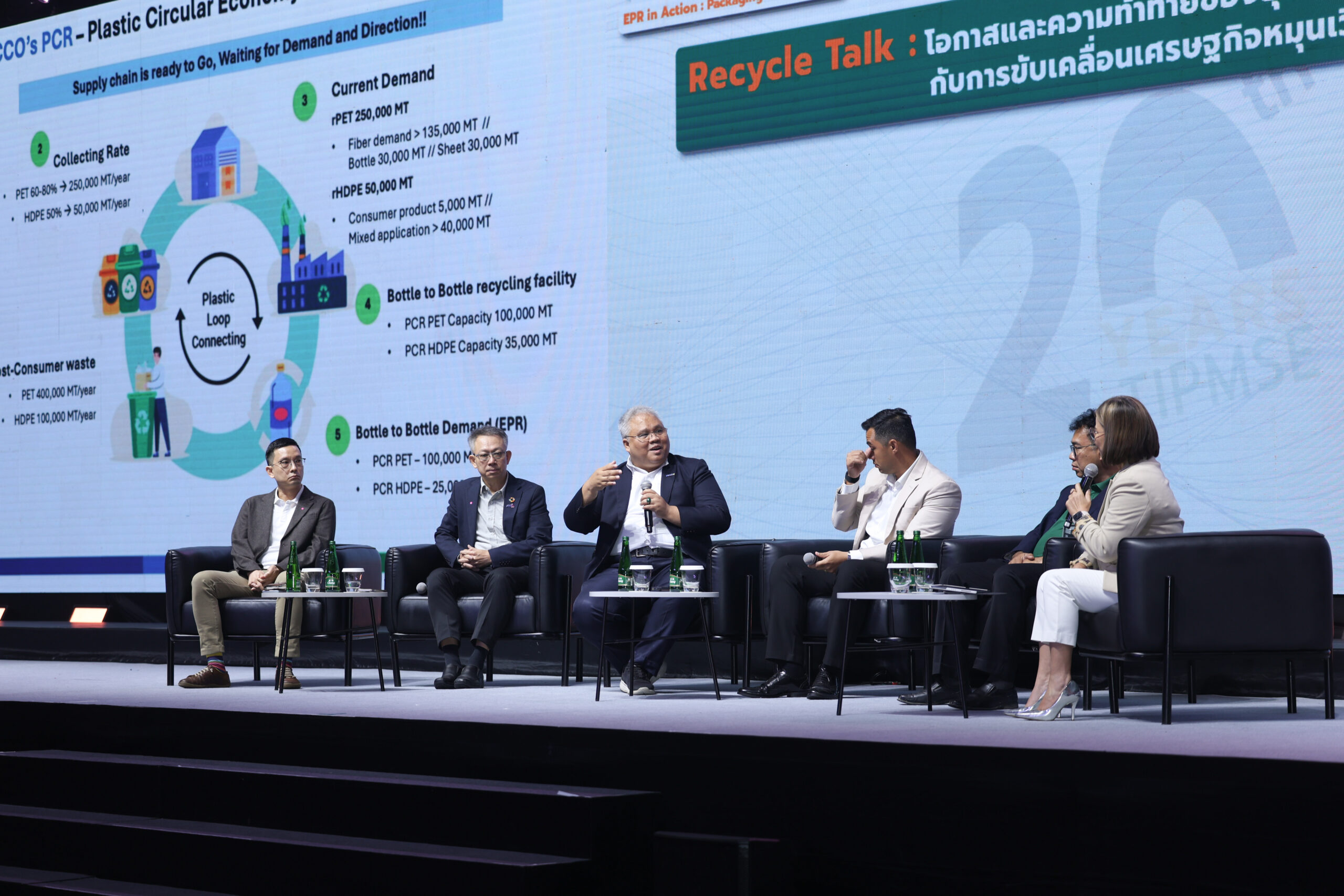 วันที่ 30 กย.2568 TIPMSE เปิดเวที รวมพลังขับเคลื่อน EPR เปลี่ยนบรรจุภัณฑ์ให้เป็นวัตถุดิบ และประกาศความร่วมมือครั้งใหญ่ ผนึกกำลัง 16,000 สมาชิก และ 149 องค์กรภาคี และเครือข่ายในระดับองค์กรศูนย์กลาง 36 องค์กร เดินหน้าสร้างเครือข่ายการจัดการบรรจุภัณฑ์อย่างยั่งยืน หรือ EPR Network ซึ่งยกระดับเพื่อให้ครอบคลุมทิศทางการขับเคลื่อนนโยบายของภาครัฐไทยและสากล ซึ่งไฮไลต์การขับเคลื่อน “EPR in Action” เปลี่ยนบรรจุภัณฑ์ใช้แล้วเป็นวัตถุดิบ ก็เพื่อสร้างเป้าหมายชัดเจน คือ ระบบจัดการบรรจุภัณฑ์อย่างยั่งยืน สู่สังคมไทยไร้ขยะ โดยคุณโฆษิต สุขสิงห์ ประธาน TIPMSE ขึ้นกล่าวต้อนรับและเปิดกิจกรรม และในงานนี้ ได้รับเกียรติจากคุณปรีญาพร สุวรรณเกษ อธิบดีกรมควบคุมมลพิษ ในการปาฐกถาหัวข้อ “ทิศทางการขับเคลื่อนนโยบายภาครัฐเพื่อบรรจุภัณฑ์ที่ยั่งยืน” คุณเกรียงไกร เธียรนุกุล ประธานสภาอุตสาหกรรมแห่งประเทศไทย (ส.อ.ท.) กล่าวบรรยายในหัวข้อ “FTI นำภาคอุตสาหกรรมมุ่งสู่การจัดการบรรจุภัณฑ์ที่ยั่งยืน” รวมถึง การร่วมถ่ายภาพแสดงพลังความร่วมมือของเครือข่ายการจัดการบรรจุภัณฑ์อย่างยั่งยืน ซึ่งปีนี้มีองค์กรในระดับสมาคม กลุ่มอุตสาหกรรม ทั้งในต้นทาง กลางทาง และปลายทางและองค์กรสนับสนุนมาเข้าร่วม จากนั้น คุณธงชัย ศิริธร รองประธาน TIPMSE ซึ่งมาสรุปภาพรวมของงานในหัวข้อ “ก้าวต่อไปของภาคเอกชนในการขับเคลื่อนเศรษฐกิจหมุนเวียนภาคสมัครใจ” ปิดจบด้วยเสวนาที่แสดงให้เห็นถึงศักยภาพในการขับเคลื่อนเศรษฐกิจหมุนเวียนด้วยหน่วยงานปลายทางจาก 5 บรรจุภัณฑ์ ประกอบด้วย ดร.รณรพี ลีละวงศ์ ผู้อำนวยการสำนักกลยุทธ์องค์กรและความยั่งยืน บริษัท บีจี คอนเทนเนอร์ กล๊าส จำกัด (มหาชน) คุณสุนทร ยงค์วิบูลศิริ ประธานกลุ่มอุตสาหกรรมเยื่อและกระดาษ ส.อ.ท. คุณณัฐนันท์ ศิริรักษ์ กรรมการผู้จัดการ บริษัท เอ็นวิคโค จำกัด Mr.Joshua Richard Hirst ผู้ช่วยกรรมการผู้จัดการ และกรรมการ บริษัท ในเครือ แองโกล เอเชีย กรุ๊ป และคุณสมยศ วัฒน์พานิช กรรมการผู้จัดการ บริษัท อีโค่ เฟรนด์ลี่ ไทย จำกัด ซึ่งดำเนินการเสวนา โดย คุณกิติยา แสนทวีสุข เลขานุการและกรรมการ TIPMSE
